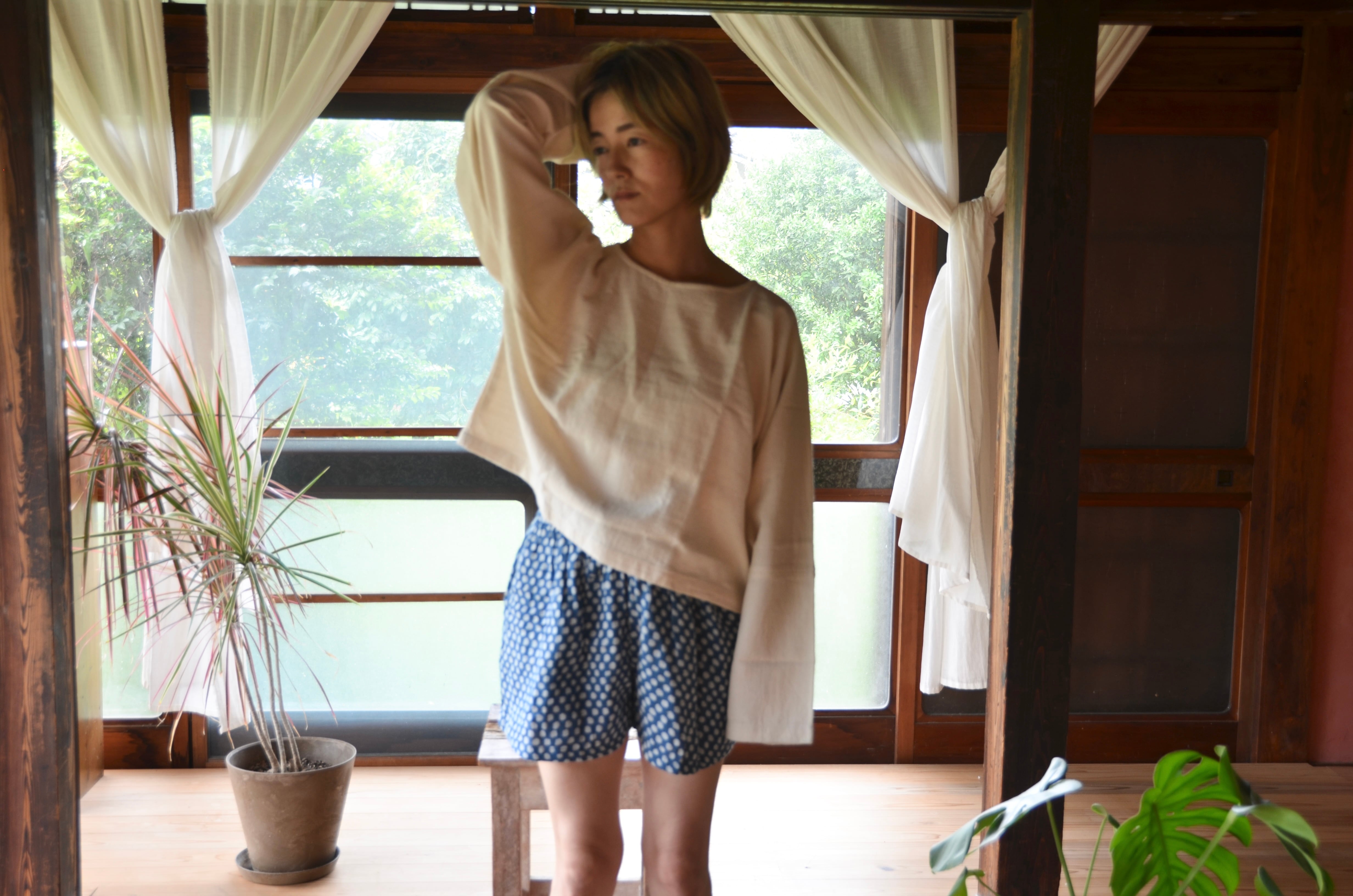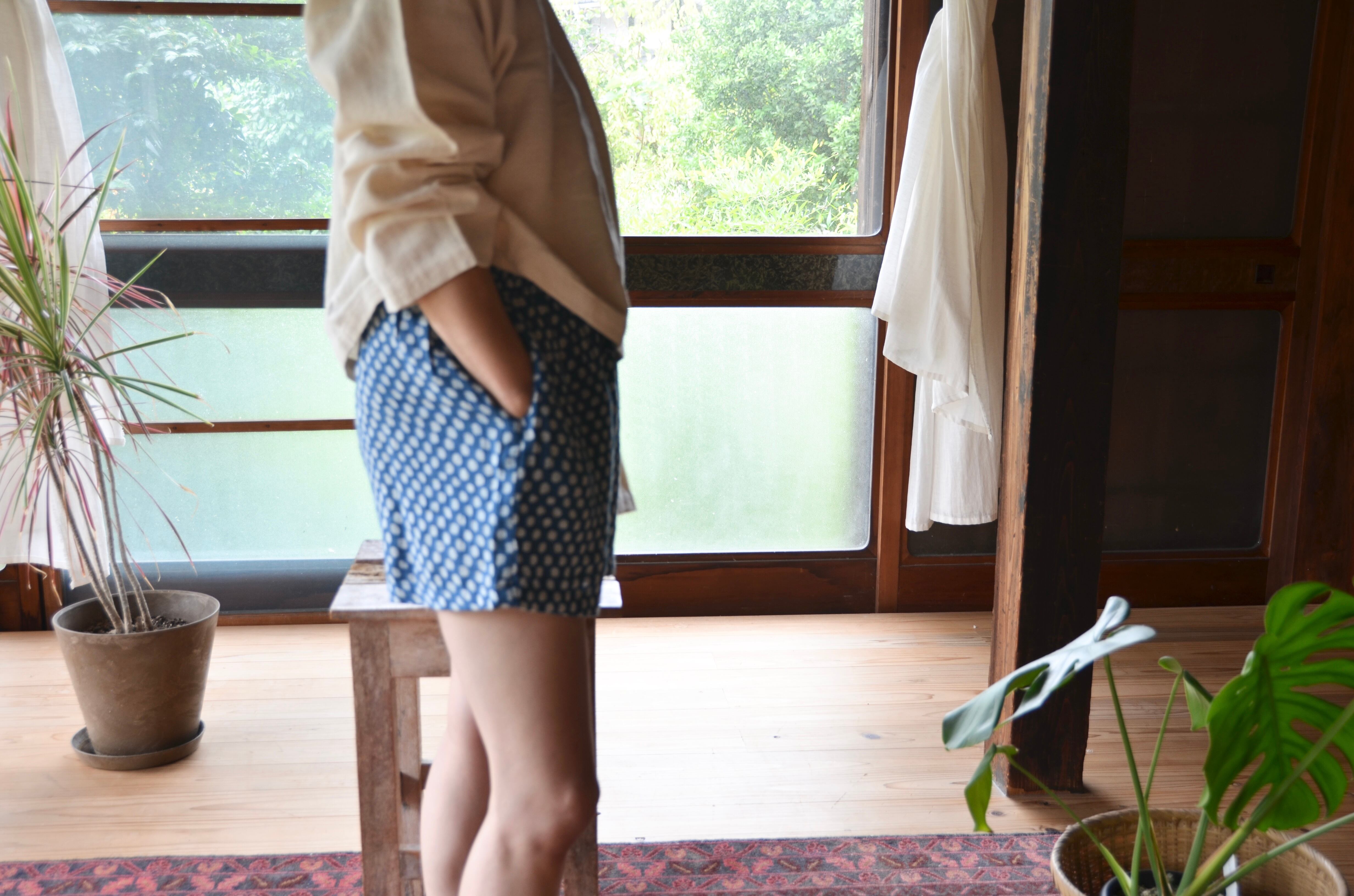 organic cotton gauze natural dyeing dot short pants (indigo)