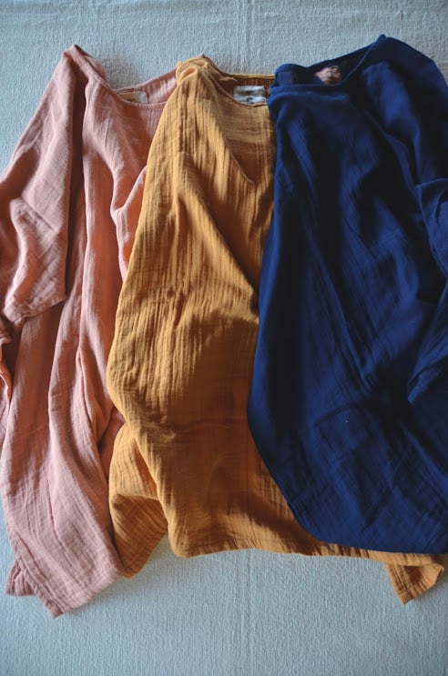 organic cotton gauze over size long sleeves (pink/mustard/indigo)