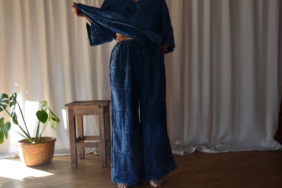 stone wash cotton gauze pater work pants