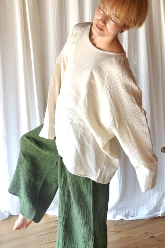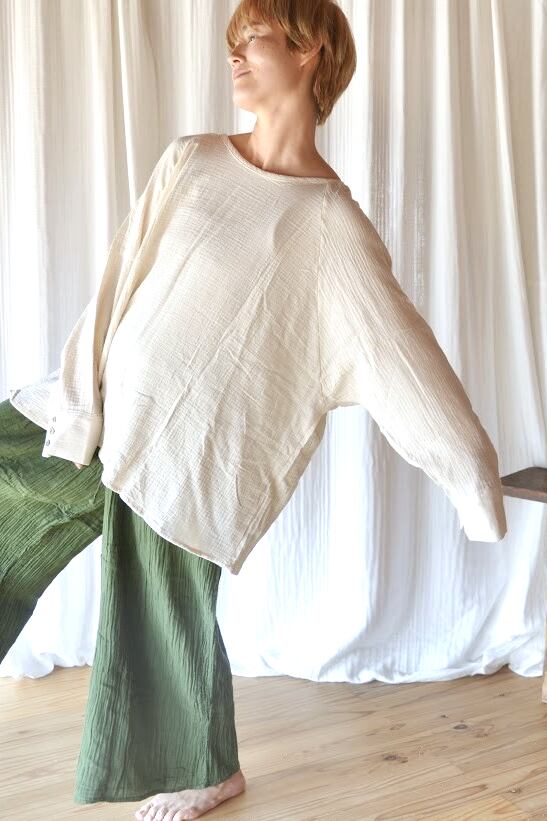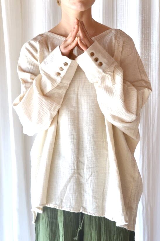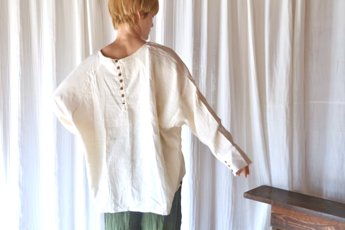 organic cotton gauze button long sleeve