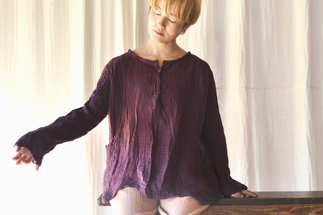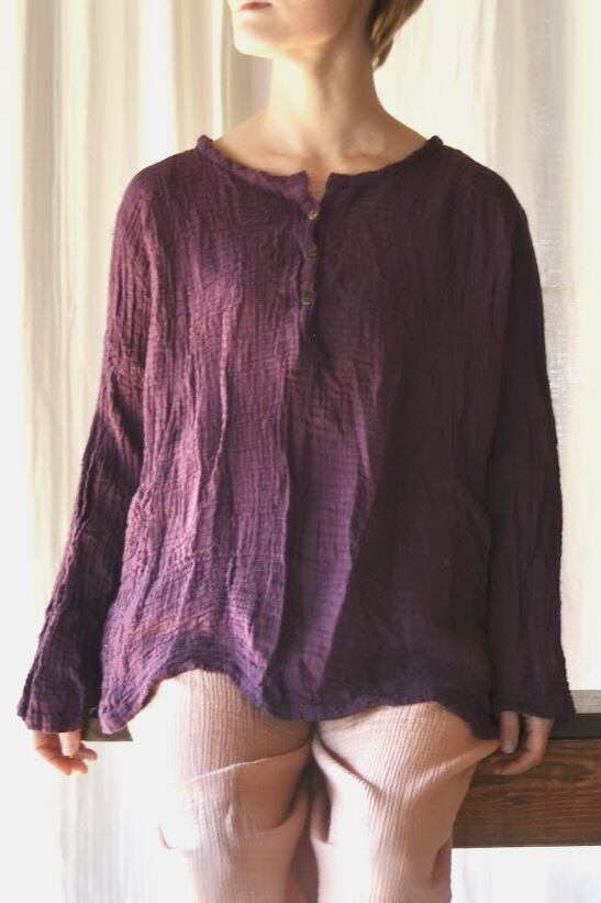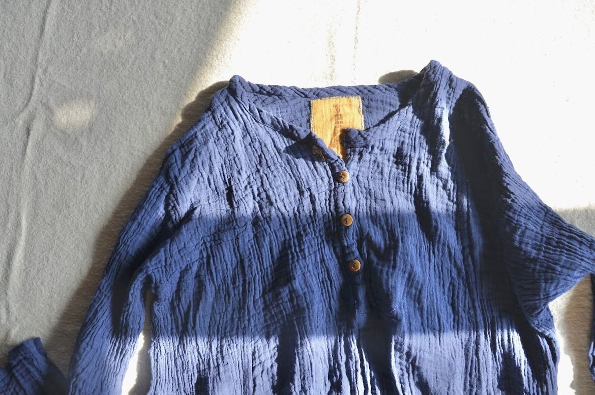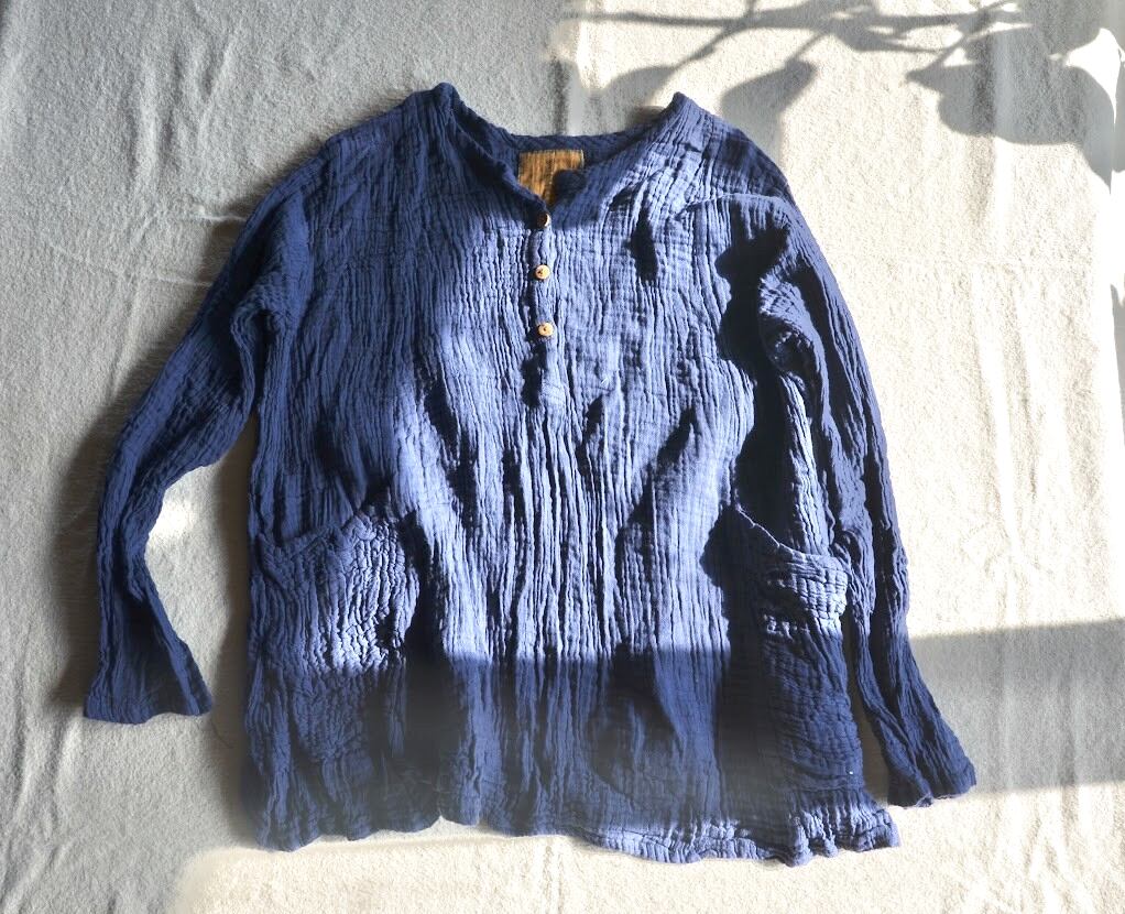 ワンポイントのヤシの実ボタンと2つのポケットがポイントのトップスです