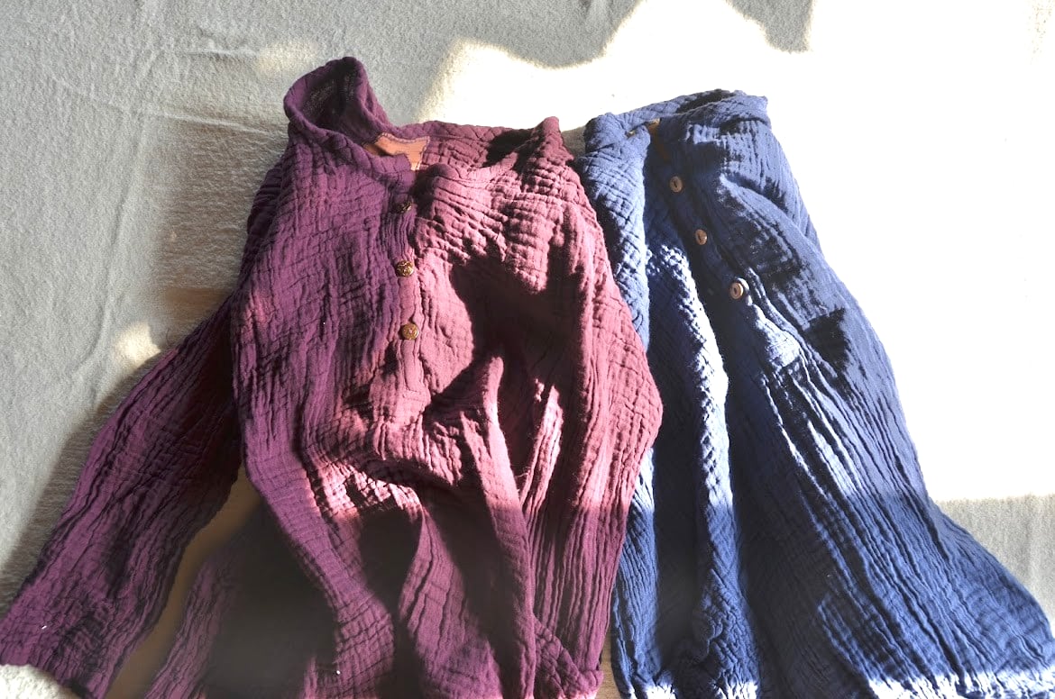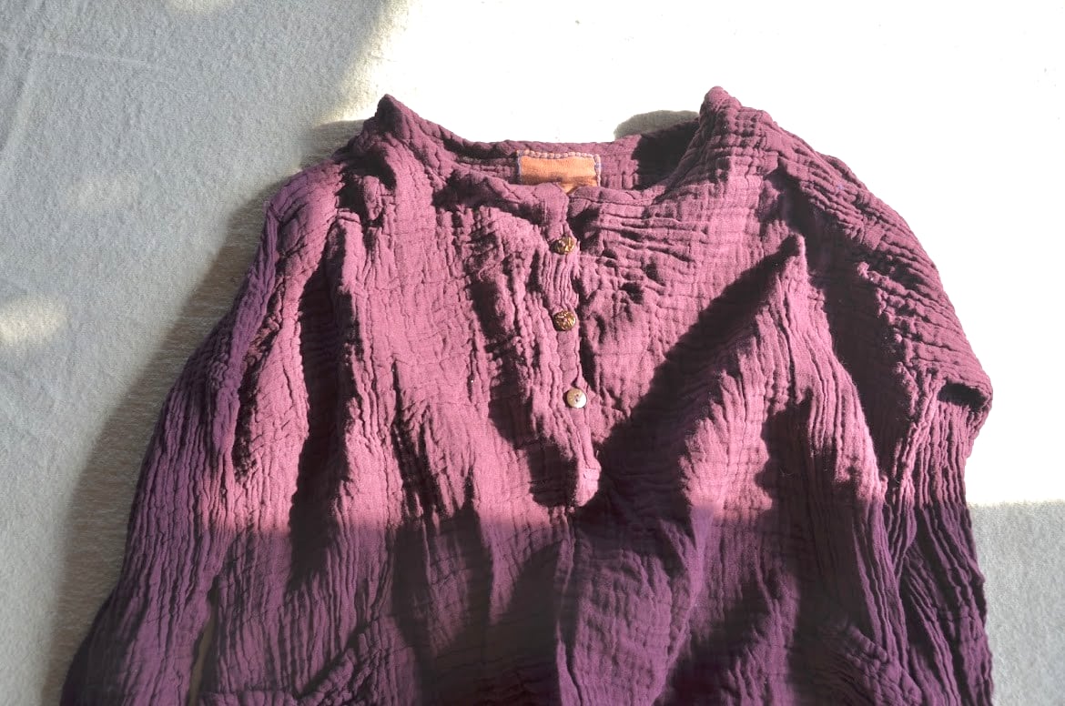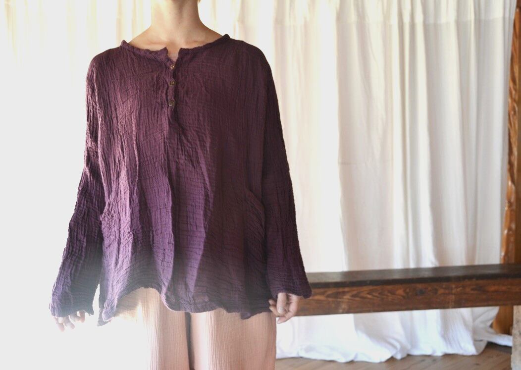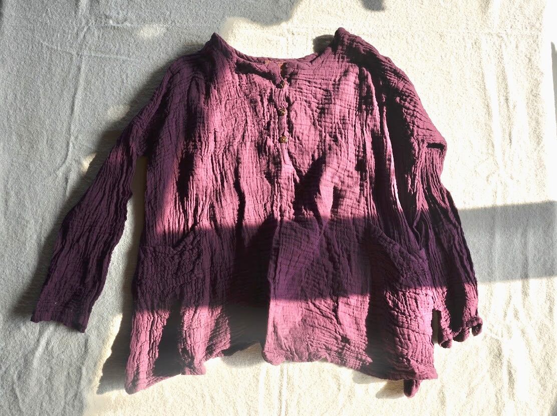 ワンポイントのヤシの実ボタンと2つのポケットがポイントのトップスです