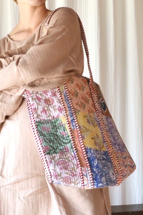 india wood block print big patchwork quilt bag