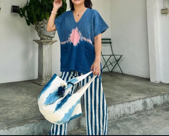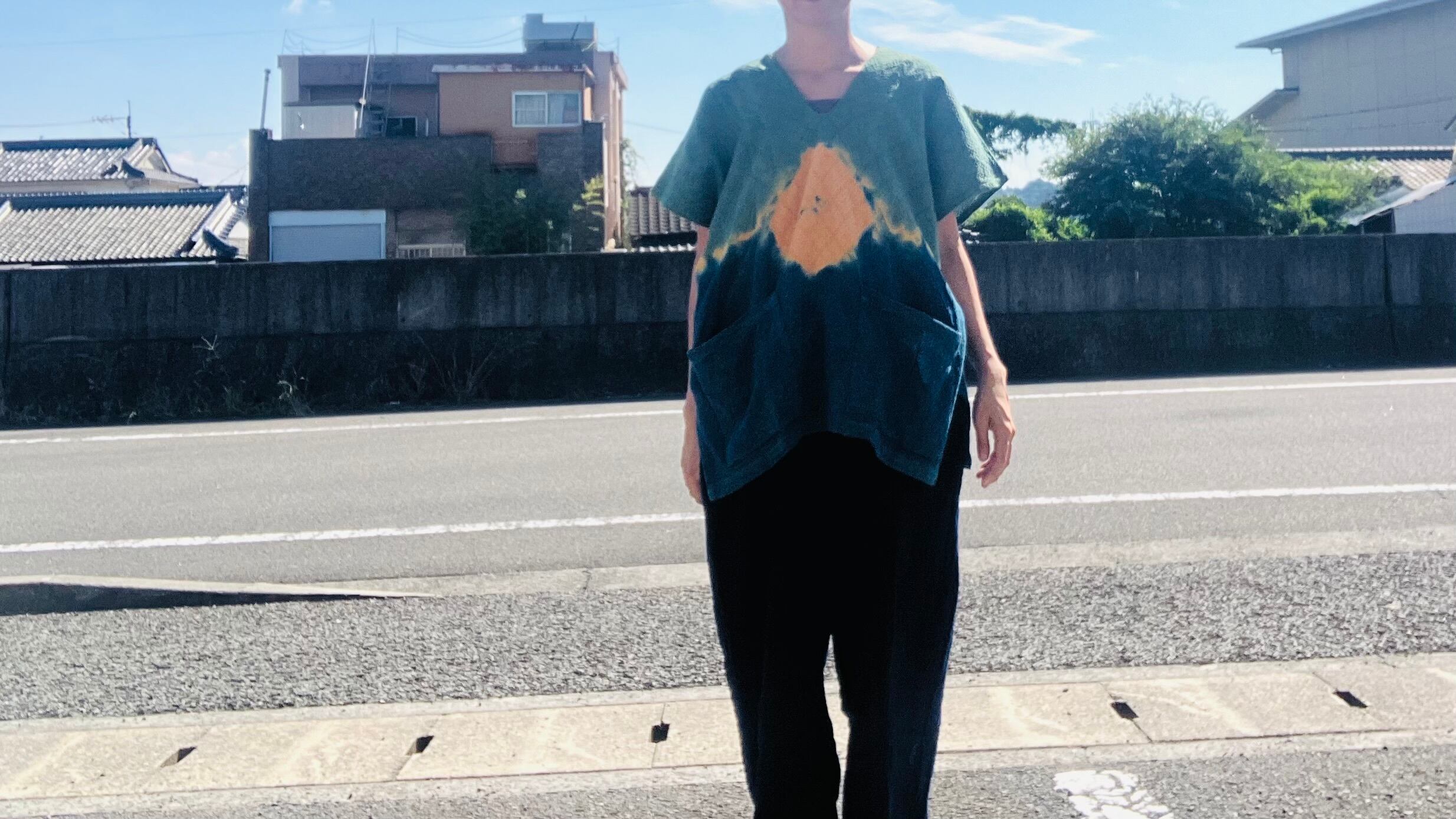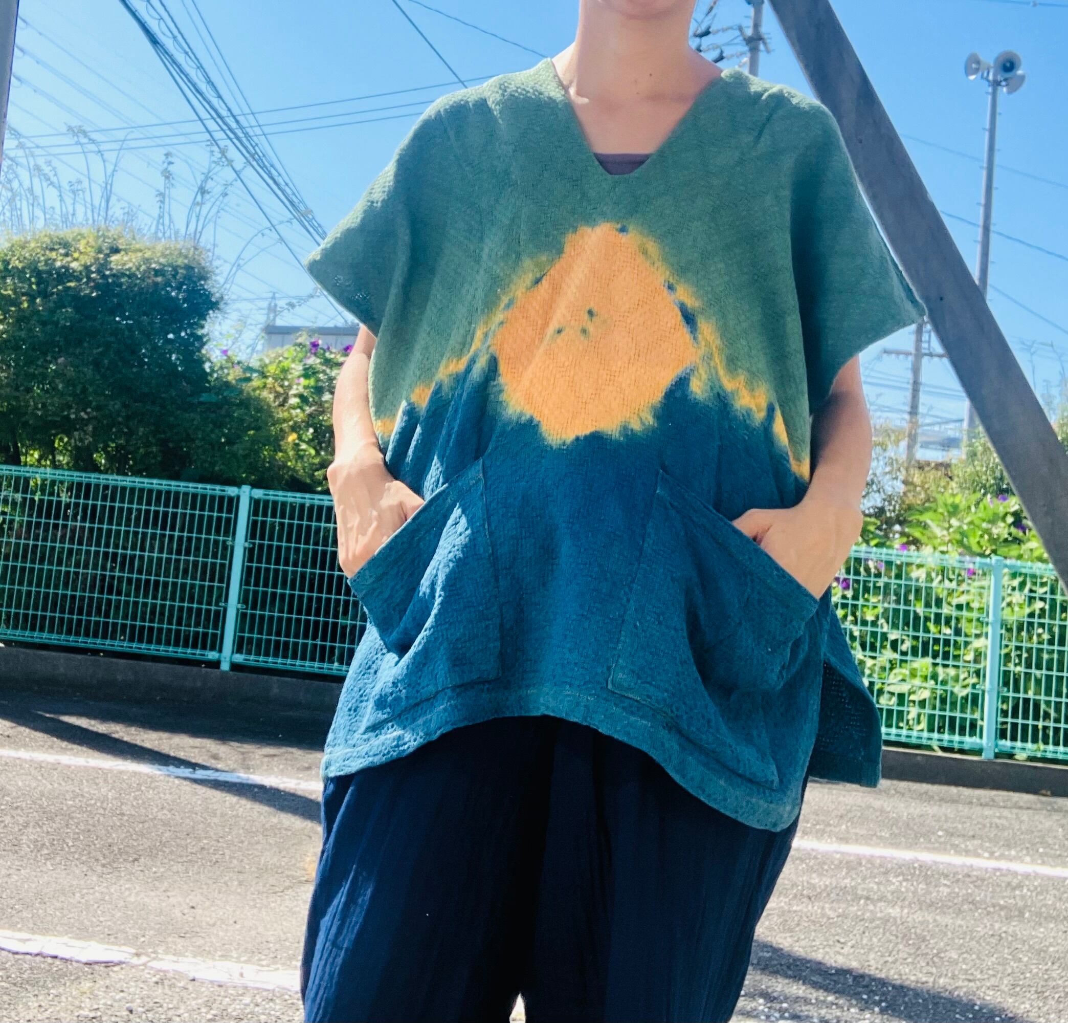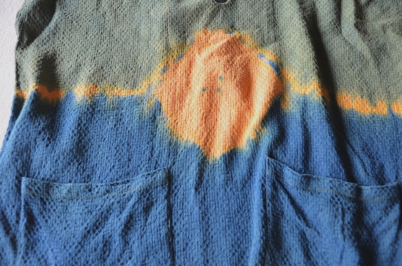 woven cotton natural dyeing KAREN shirt(indigo×pink/indigo green×orange)