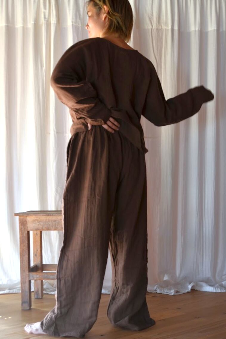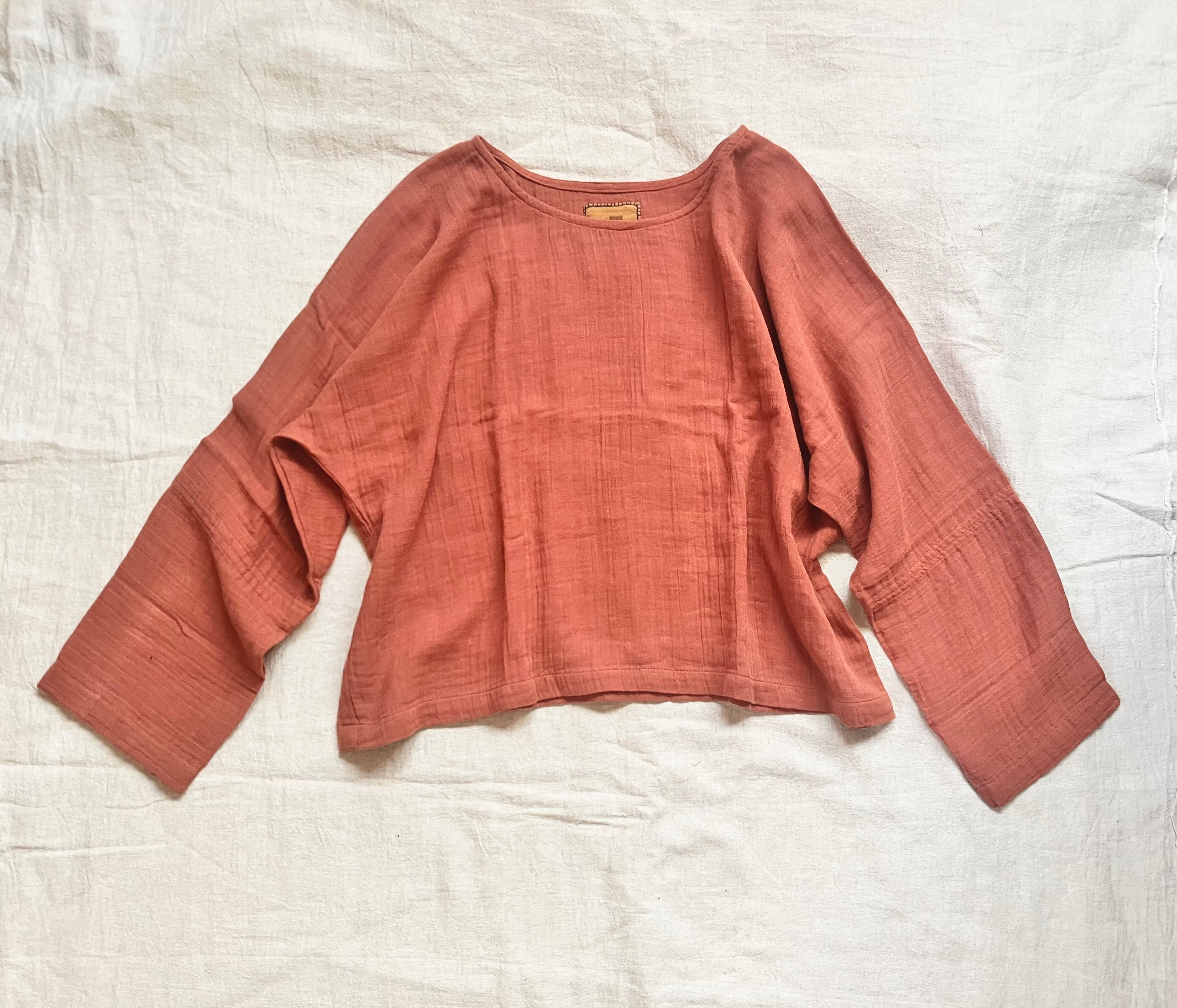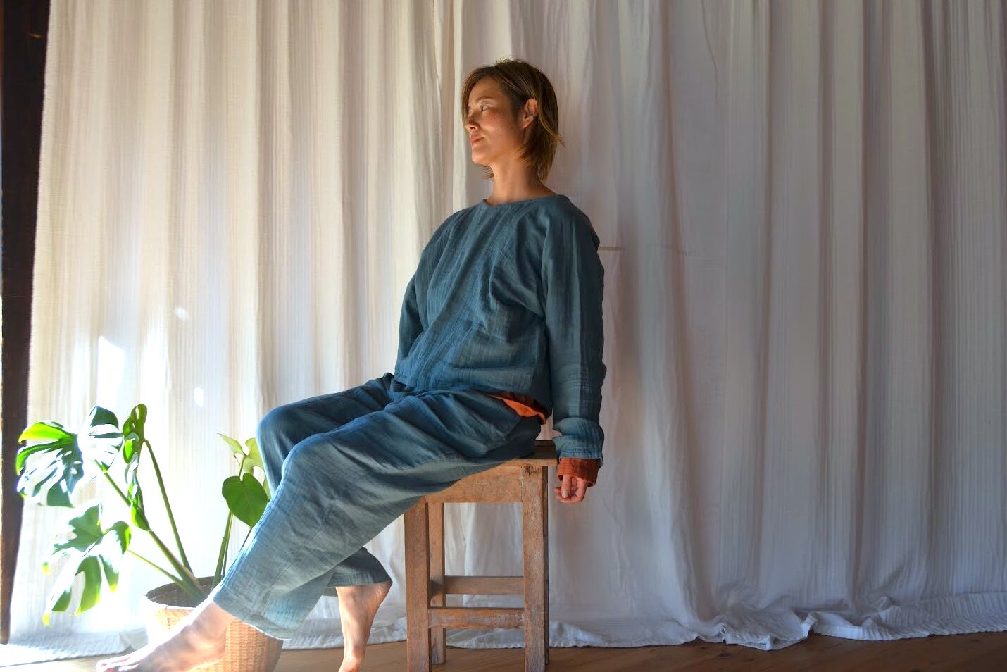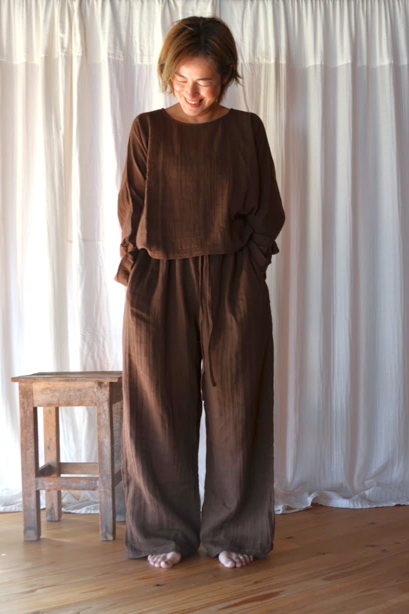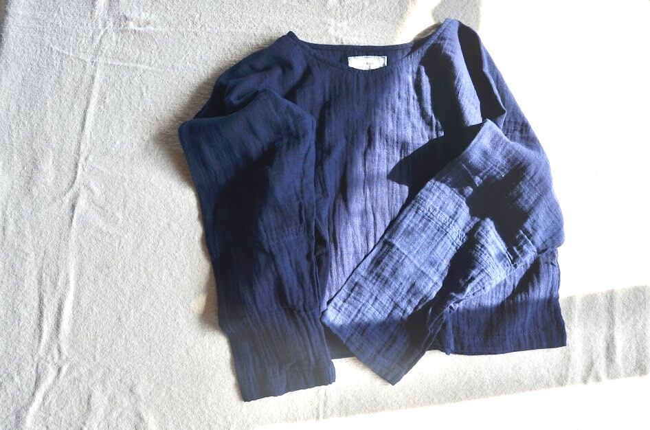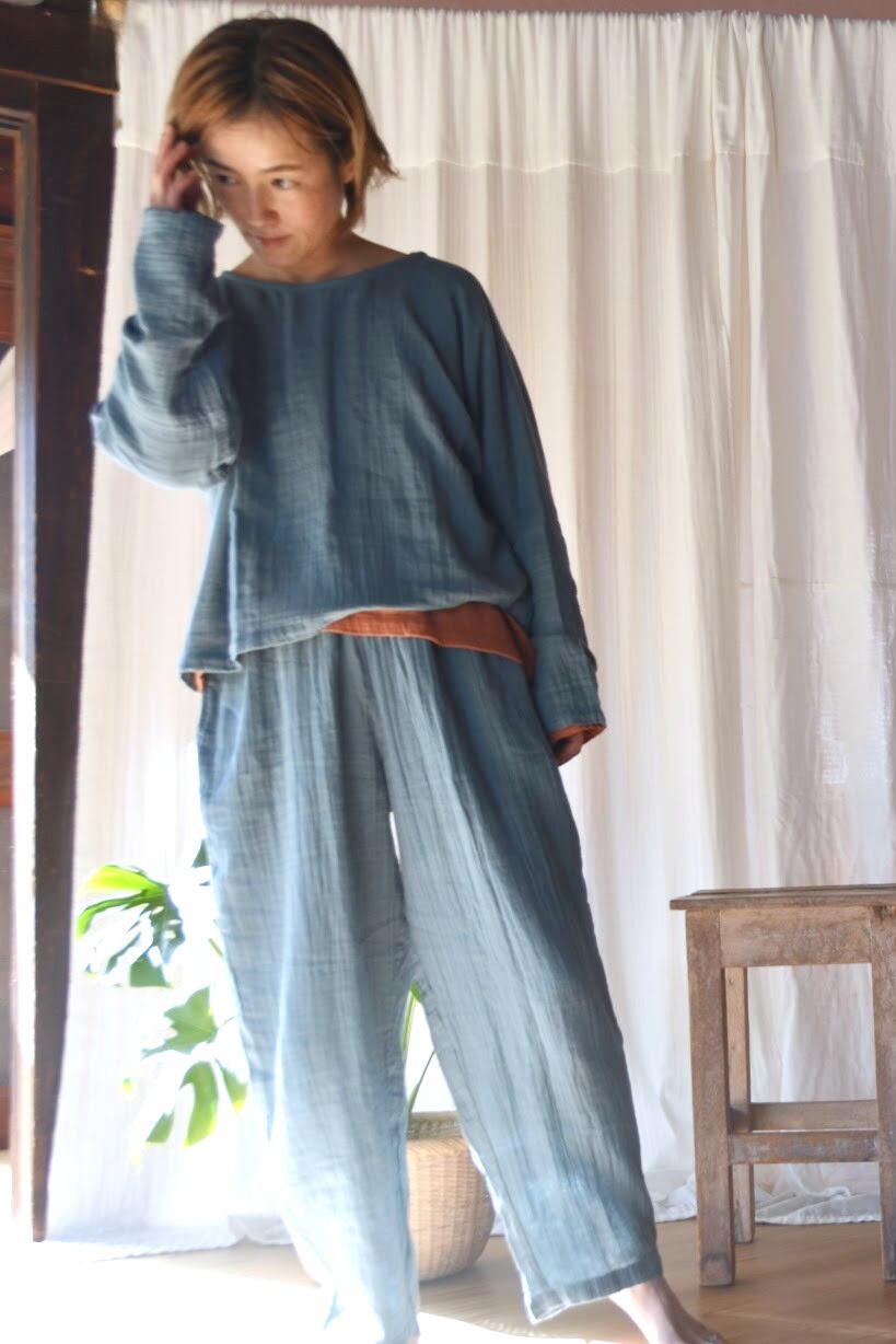organic cotton gauze natural dyeing long sleeves (pink/brown/red/sea blue/d.blue)